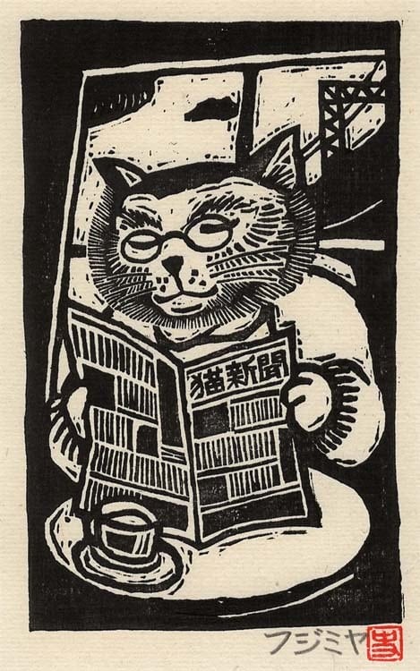 【特典付き!】ねこしんぶんグッズ1個プレゼント!木版画「ねこしんぶん」版画家/藤宮史のオリジナル版画